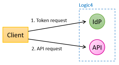 When using OAuth2, the client first requests a token (JWT, see RFC 7519) from the Logic4 Identity Provider (IdP). The token is valid for an hour and can be used for multiple requests to the API. Details of a token request are explained below (Token requests).